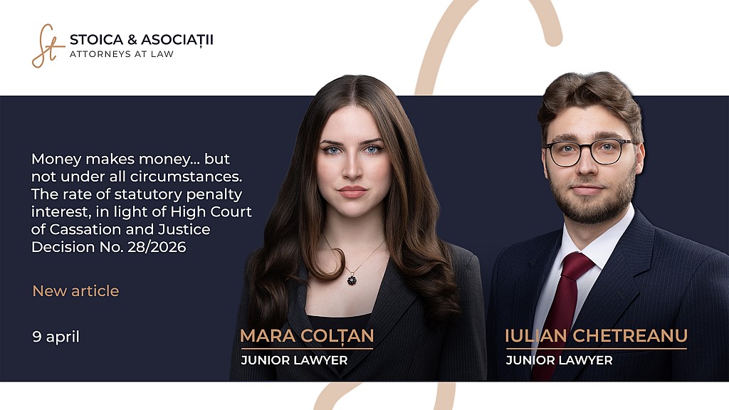 An article by Mara Colțan - mcoltan@stoica-asociatii.ro – and Iulian Chetreanu, Junior Lawyers - STOICA & ASOCIAȚII.