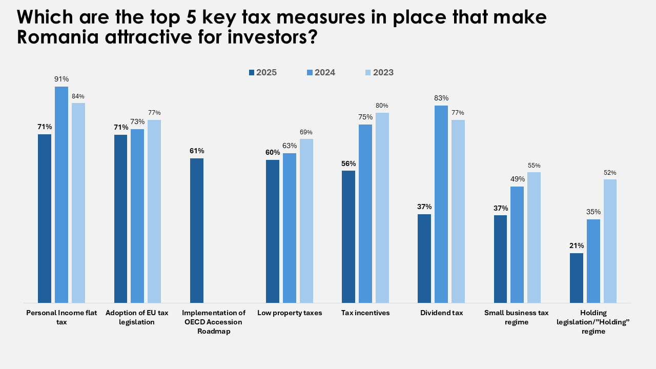 The good news is, however, that looking ahead, investors maintain confidence in Romania, on condition that the reform trajectory is upheld and the commitment to reverse harmful fiscal measures, such as the minimum turnover tax (IMCA), is observed,” emphasized AmCham Romania President, Vlad Boeriu.
