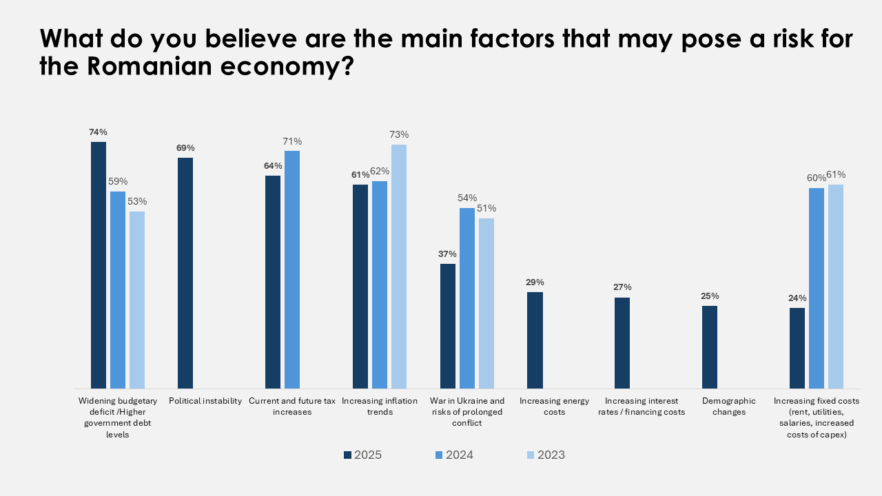 The business community is concerned about fiscal developments, given the need for significant deficit reduction under Romania’s multiannual agreement with the European Commission. If current fiscal policies prove ineffective, there is a risk of additional tax burdens with negative economic effects. The effectiveness of tax evasion measures will need to be assessed based on concrete results.