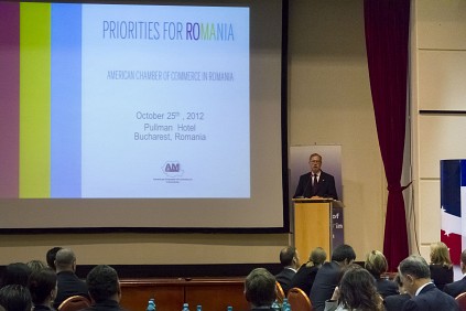 It is our pleasure to invite all our AmCham Romania members to save the date for October 25th, 2012, when starting with 9:30 we will publicly release ‚Priorities for Romania 2012’, a document containing your vision and the resulted policy proposals on taxation, labor market, education, retirement & social benefits, capital markets, ICT, public procurement, healthcare, energy, mining and environment, infrastructure, public – private partnership and tourism.