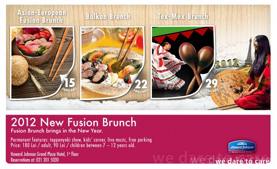 Come and spend your time with us! In January, Fusion Brunch prepared a lot of tasty surprises for you and your children! This month, we welcome 2012 with an Asian - European Brunch, a Balkan and a Tex –Mex Brunch.
