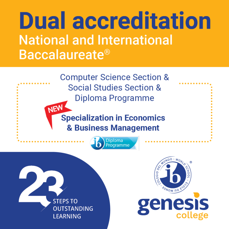 We are delighted to inform you that starting from the school year 2023-2024, Genesis College High School has introduced the Economics & Business Management Specialization, catering to the diverse career aspirations of our students and addressing the growing demand for economic literacy in the corporate world. This specialized program will equip our students with the knowledge and skills necessary to navigate the complexities of the global economy and make informed decisions in various professional contexts. After completing the first two years of high school, our students can choose to undertake the Diploma Programme courses. The International Baccalaureate Diploma Programme is a rigorous pre-university course carefully designed to prepare all students and give them the expertise and tools for their future careers.