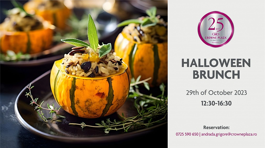A perfect Sunday includes friends, family, delicious food and a relaxed atmosphere. We invite you on 29th of October, 2023, between 12:30 and 16:30 to the Halloween Brunch at Crowne Plaza Bucharest. We await you with live music, exquisite dishes and sweets made by our talented confectioners.