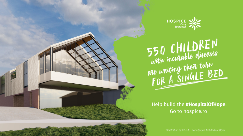 In Romania today, more than 22,000 children are eligible for palliative care. For all of them, there are only 40 hospital beds available. This means that over 550 children depend on a single palliative care bed. To change this reality, to offer eased TIME to children living with incurable illnesses, HOSPICE has started building the #HospitalOfHope in Adunații-Copăceni.