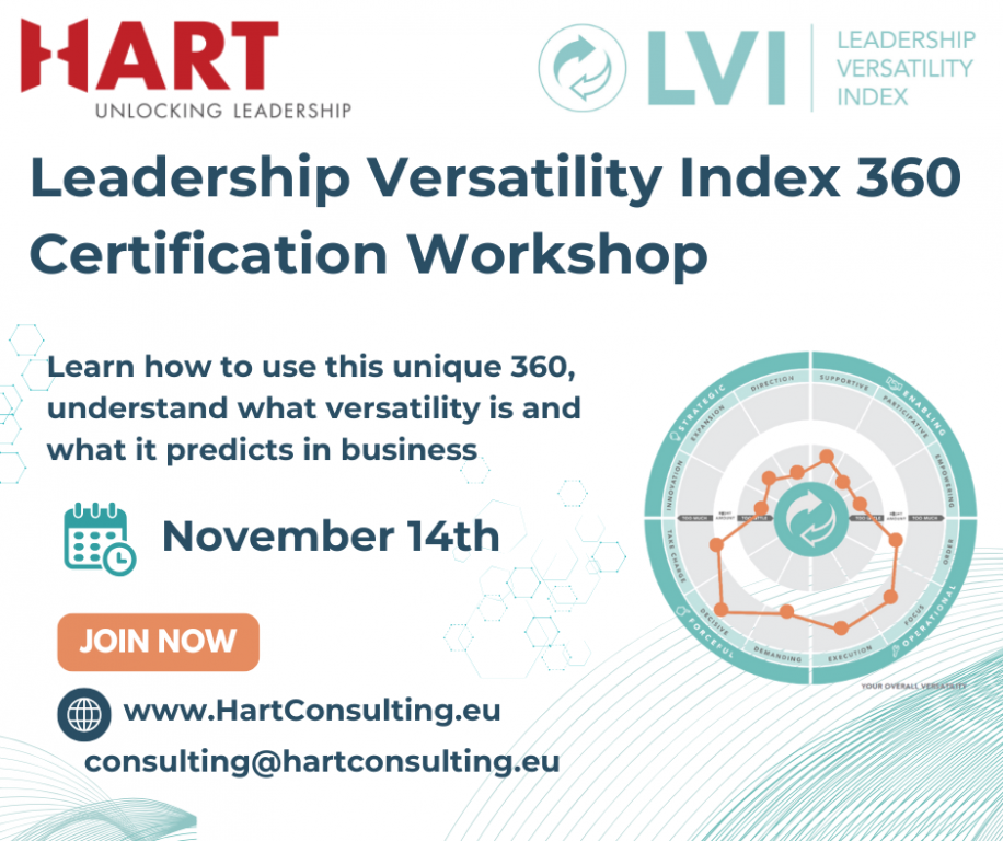 On November 14th, we invite you to a one-day certification training (online, English) - Leadership Versatility Index 360 (LVI 360) Certification.