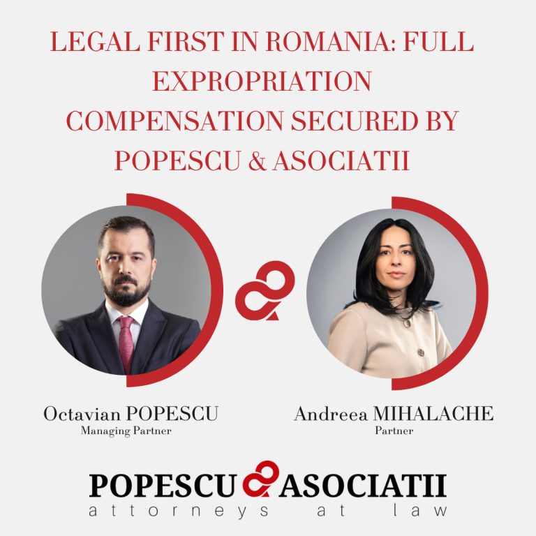 This outcome is the result of a rigorous legal strategy, carefully designed and implemented by an interdisciplinary team of specialists in complex litigation, real estate law, economic valuation, and administrative law at Popescu & Asociatii. Coordinated by Octavian POPESCU, Managing Partner, and Andreea MIHALACHE, Partner, the team succeeded in proving the severe negative impact on a long-term investment and secured substantial compensation that accurately reflects the full extent of the client’s losses.