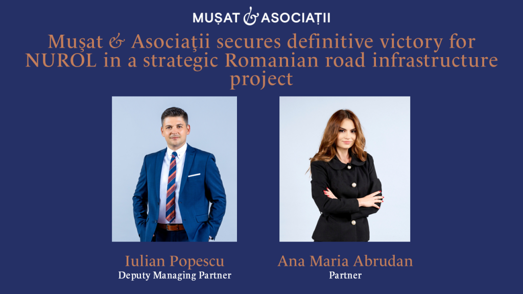 “Major infrastructure projects require not only strong execution capabilities but also robust legal protection throughout the procurement and delivery phases. Our work for NUROL demonstrates our ability to secure and preserve winning positions in some of the most complex procurement procedures on the Romanian market.” said Ana Maria Abrudan, Partner at Mușat & Asociații, a key member of the winning team.