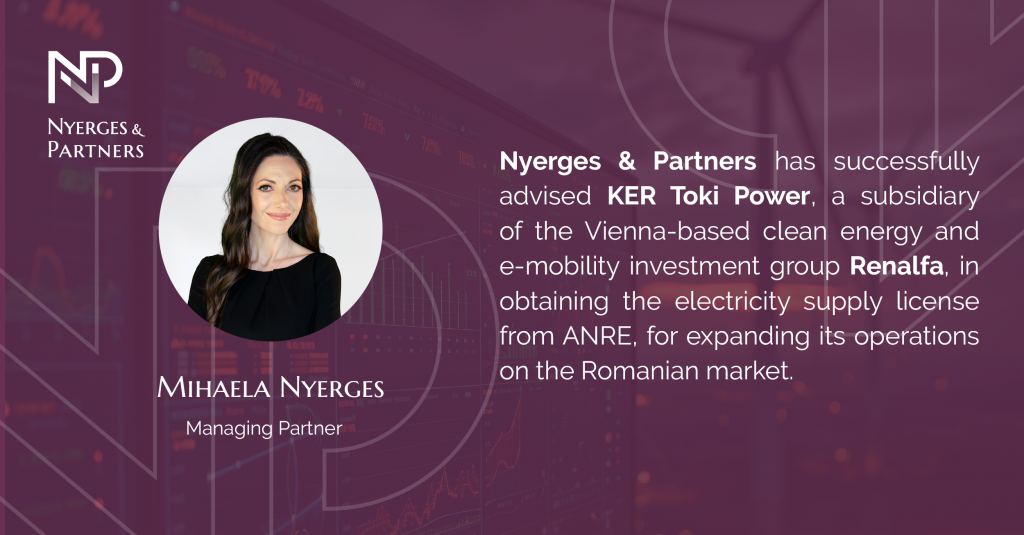We are excited to share that Nyerges & Partners has successfully advised KER Toki Power Romania, a subsidiary of the Vienna-based clean energy and e-mobility investment group Renalfa, in obtaining its electricity supply license from the Romanian Energy Regulatory Authority (ANRE). This milestone represents a significant step in KER Toki Power’s ambitious journey to expand its operations and establish itself as a key player in the Romanian energy market.