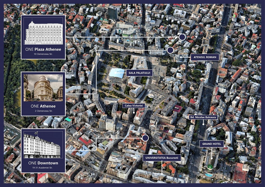 "We are delighted by the acquisition of an unfinished, abandoned building located in an area with a special history of the city. We are thus able to increase our company's efforts to get involved in the regeneration of the centre of Bucharest. One Plaza Athénée will become a landmark development on the 5-star hotel map. We are negotiating with several global Hotel brands, for the operation of the hotel with a multi-year contract. Located right in the heart of the city, the future lifestyle hotel will offer plenty of commercial, cultural and entertainment options just a few steps away", said Victor Căpitanu, co-founder of One United Properties.
