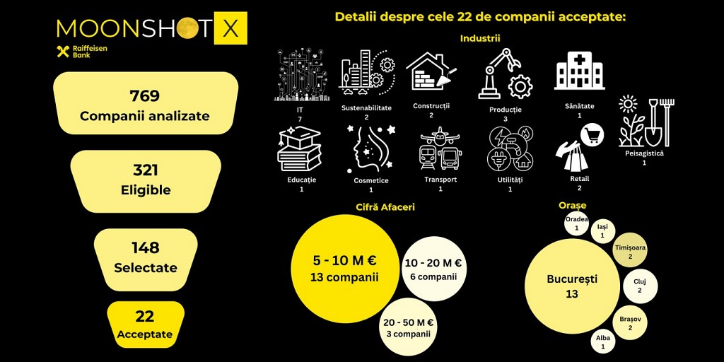 Raiffeisen Bank Romania announced the successful completion of the selection process for MoonShotX, a groundbreaking initiative designed to support local mid-corporate companies (5–50-million-euro turnover) in scaling their businesses regionally, and potentially internationally.
