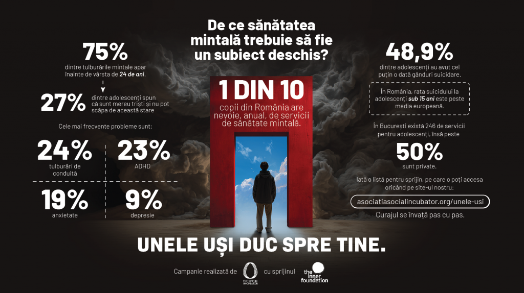 The Social Incubator Association (ATSI) launches the campaign “Some Doors Lead to You”, an awareness and information initiative that brings youth mental health in Romania into the spotlight and highlights the urgent need for real, stigma-free, and shame-free access to support.