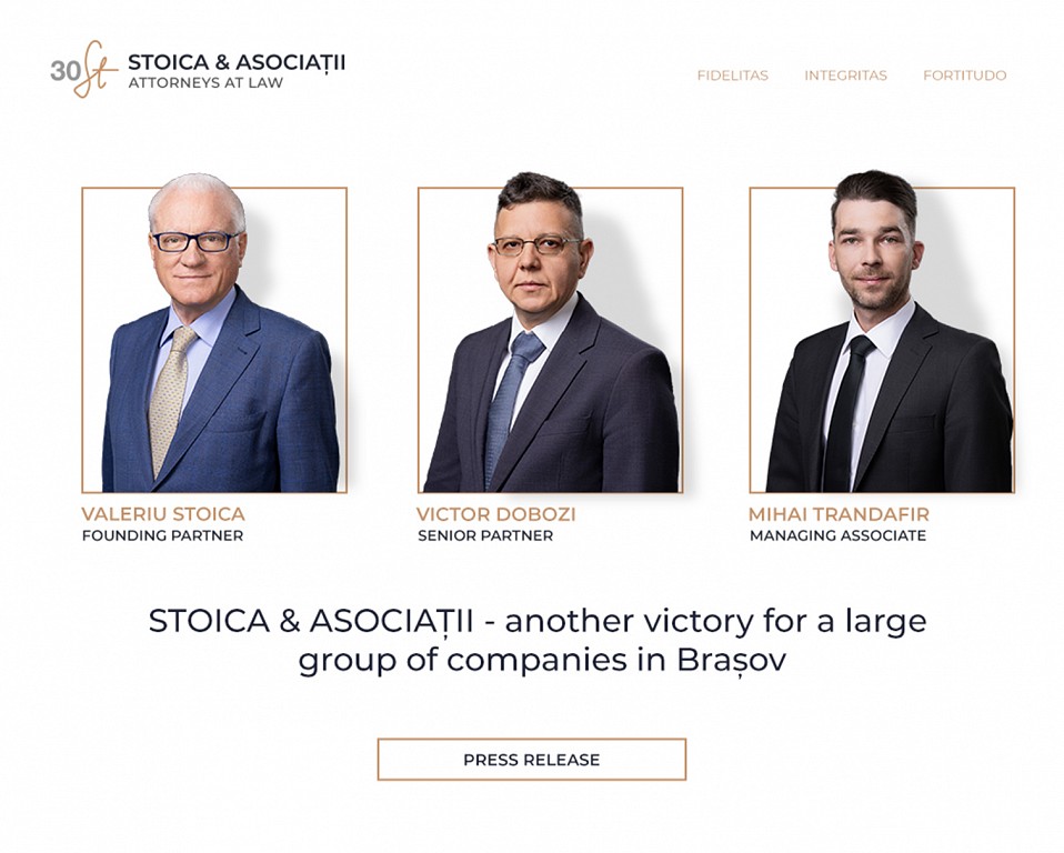 The team of lawyers from STOICA & ASOCIAȚII, consisting of Valeriu Stoica (Founding Partner), Victor Dobozi (Senior Partner) and Mihai Trandafir (Managing Associate), recently achieved an important victory for its client, a partner in a group of companies in Brașov, in a criminal trial involving over 80 defendants.