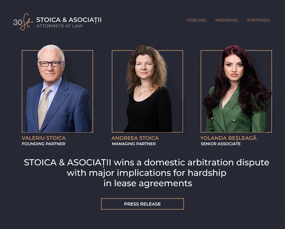 The team of lawyers from STOICA & ASOCIAȚII, which handled the arbitration dispute, consisted of: Valeriu Stoica – Founding Partner – Andreea Stoica – Managing Partner – and Yolanda Beșleagă – Senior Associate.