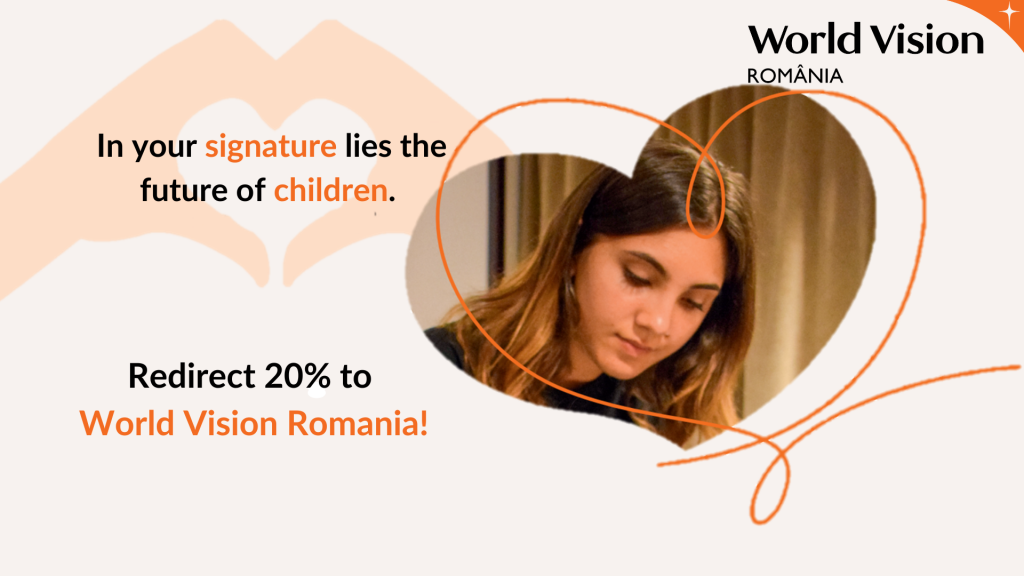 As an employee, you can redirect 3.5% of your income tax for FREE, in just one minute. All the details, including the form you need to fill out, can be found here: https://worldvision.ro/implica-te/persoane-fizice/directioneaza-3-virgula-5-din-impozit/