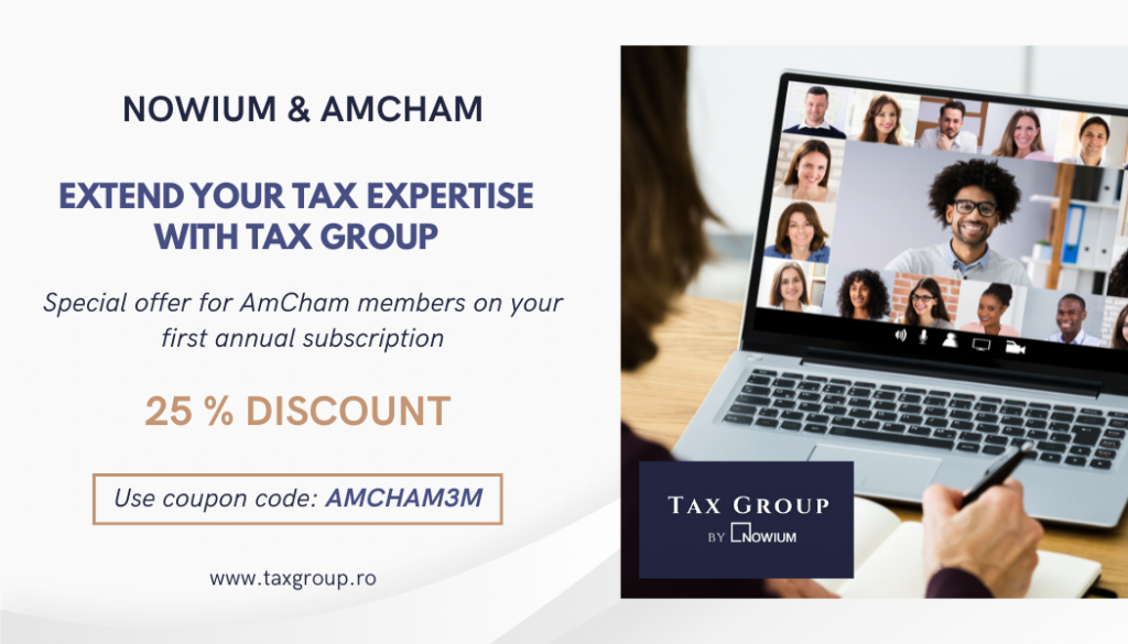 Members may either submit their request by email at taxgroup@taxgroup.ro or purchase the subscription directly on www.taxgroup.ro, by entering the dedicated coupon code AMCHAM3M at Annual Plan checkout.