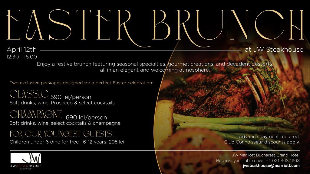 Seating for this special occasion is limited. We warmly invite you to reserve your table and celebrate Easter in timeless style at JW Marriott Bucharest Grand Hotel.